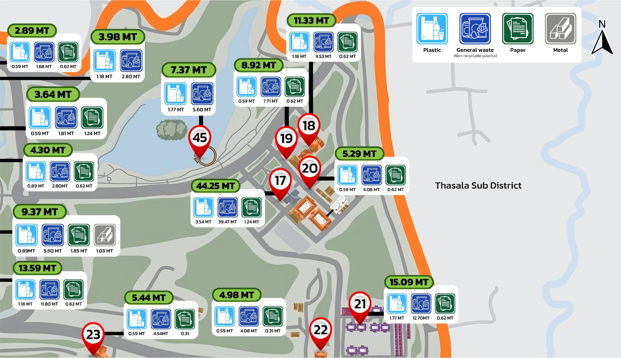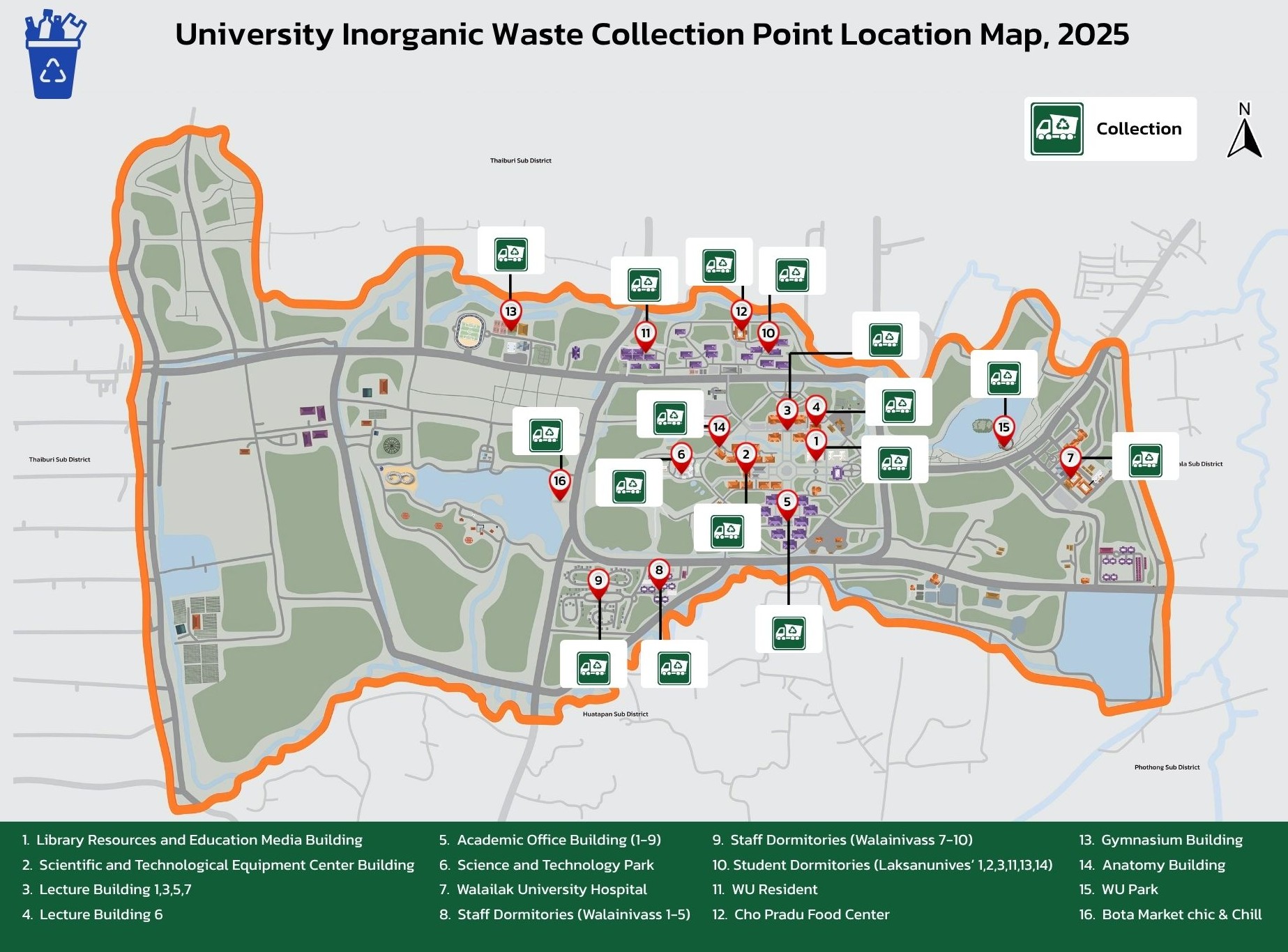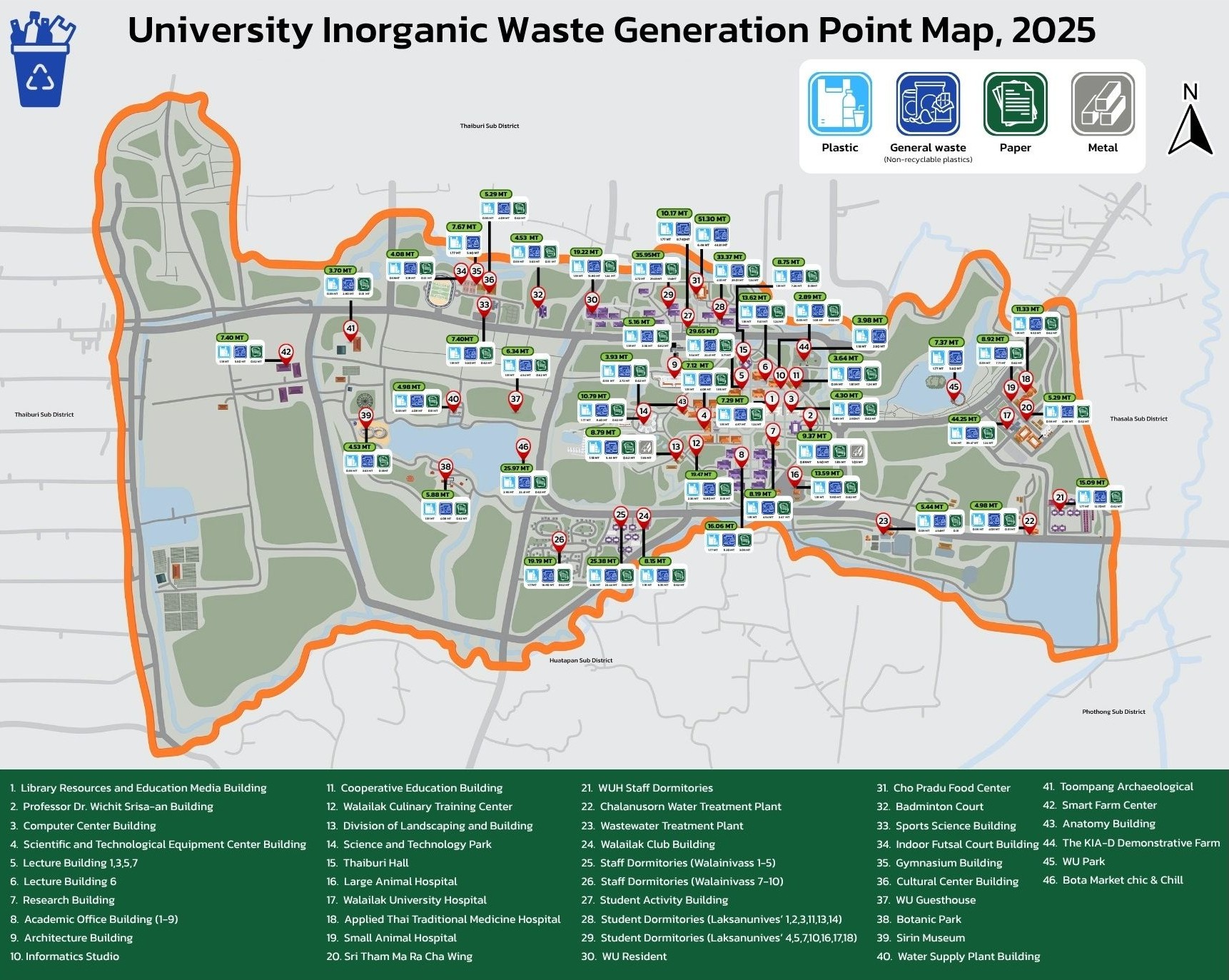 Figure 8.2 Map Depicting the Sources of Inorganic Waste within Walailak University