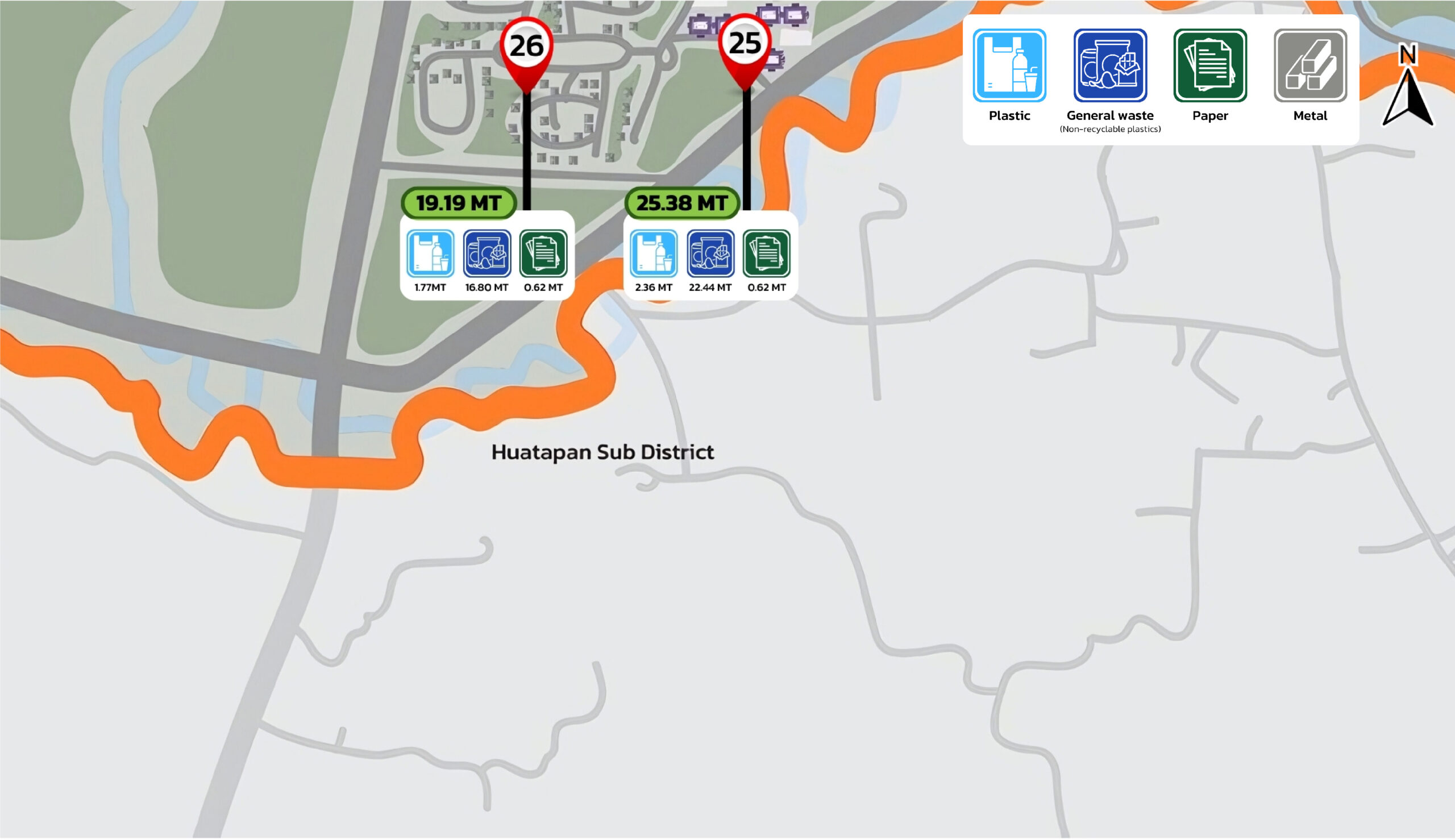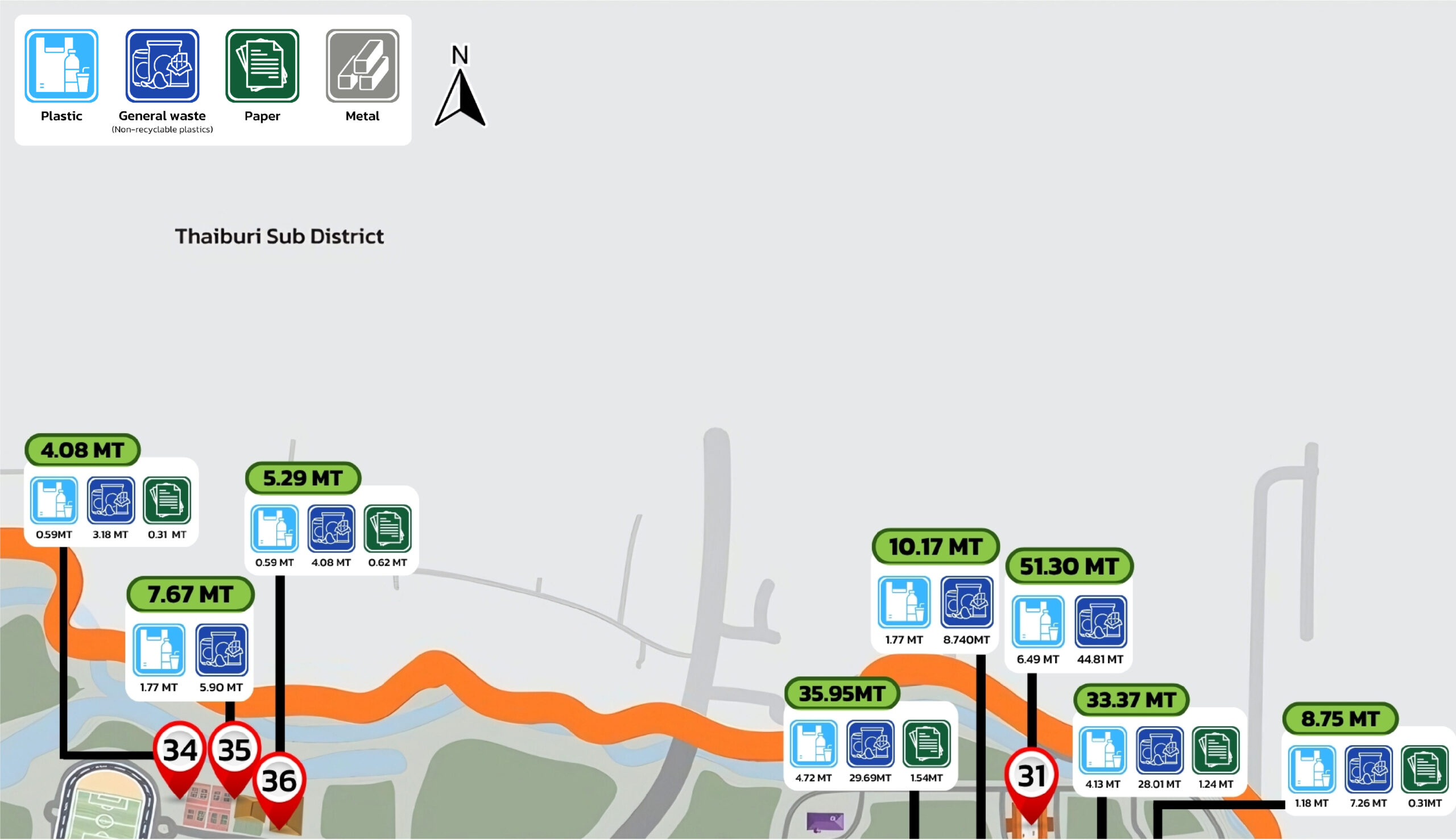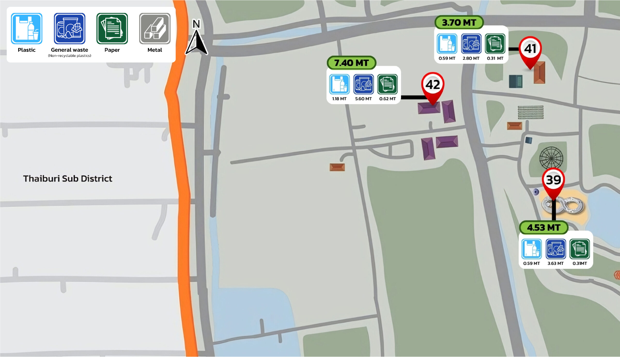 Figure 8.2 Map Depicting the Sources of Inorganic Waste within Walailak University