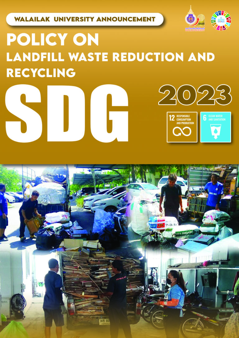 • Announcement of Walailak University Subject : Policy on Landfill Waste Reduction and Recycling B.E. 2566 (2023)