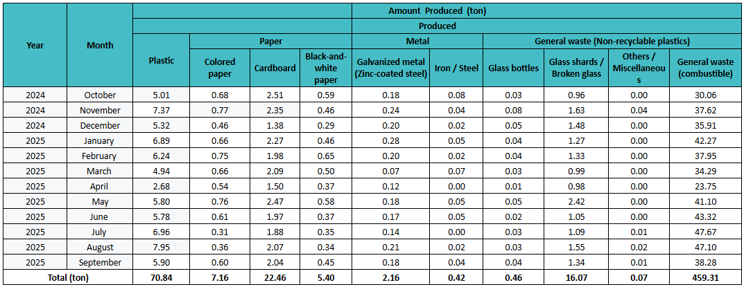 Through systematic classification and management of inorganic waste, Walailak University not only mitigates environmental impacts but also reinforces its commitment to achieving sustainability goals under the UI GreenMetric framework, thereby advancing its role as a truly Green University.