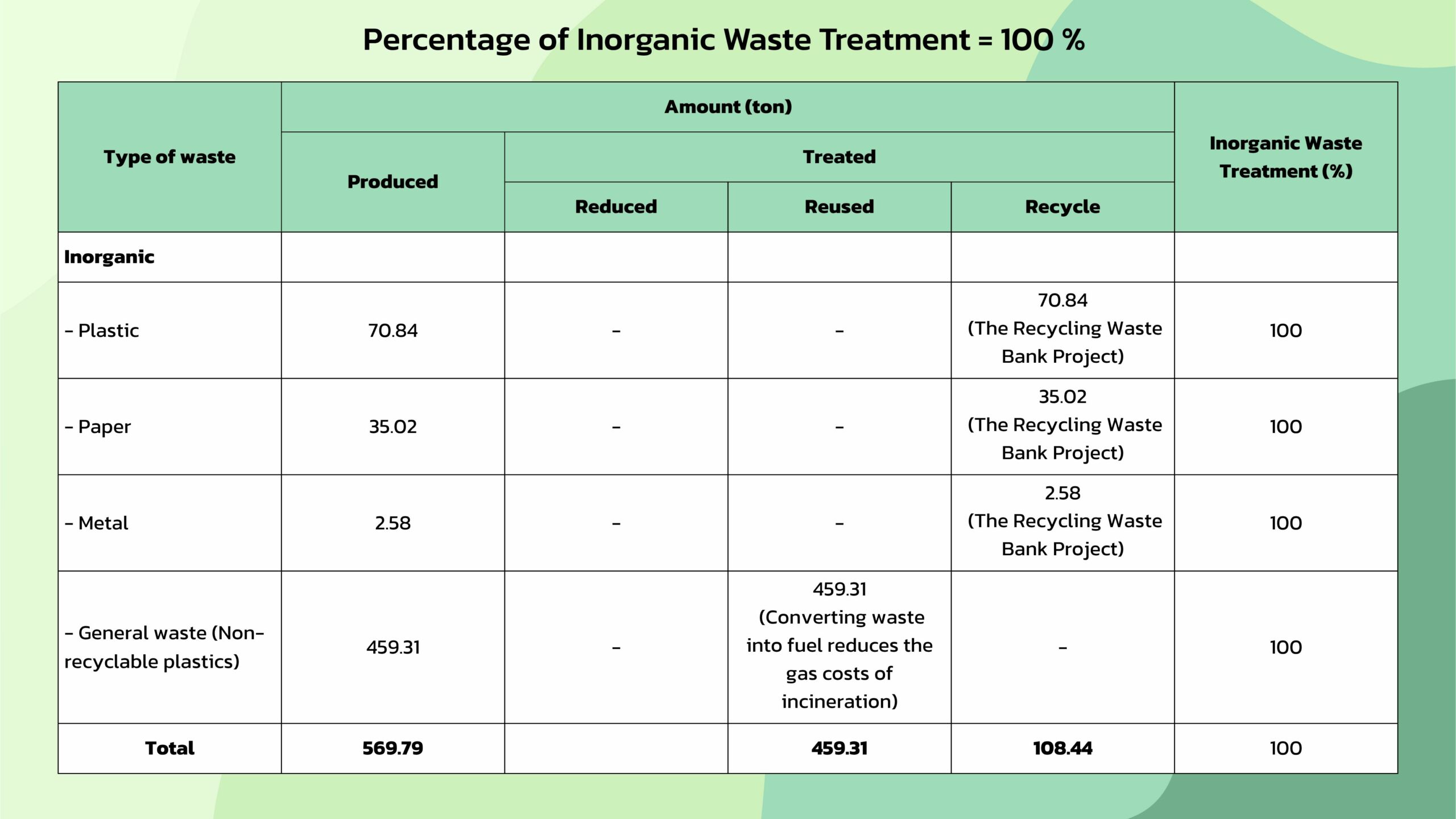 The results of waste management can be summarized as follows: