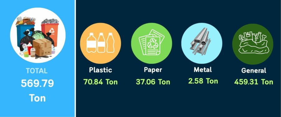 • Plastic waste amounts to 70.84 tons, consisting of bottles, food packaging, and single-use plastics. The university encourages effective waste segregation to maximize recycling potential.