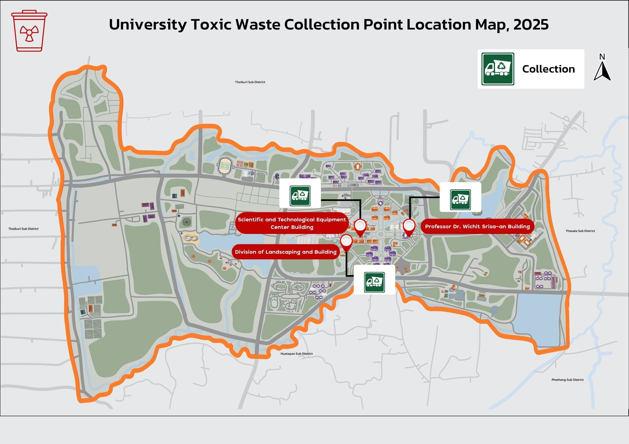Figure 7 Map Depicting the Sources of Toxic Waste within Walailak University