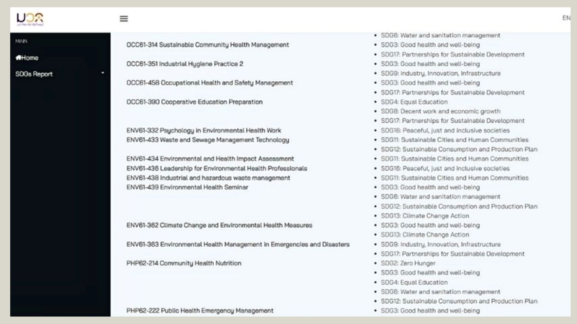 Figure 10 The ratio of courses with the Sustainable Development Goals (SDG)
