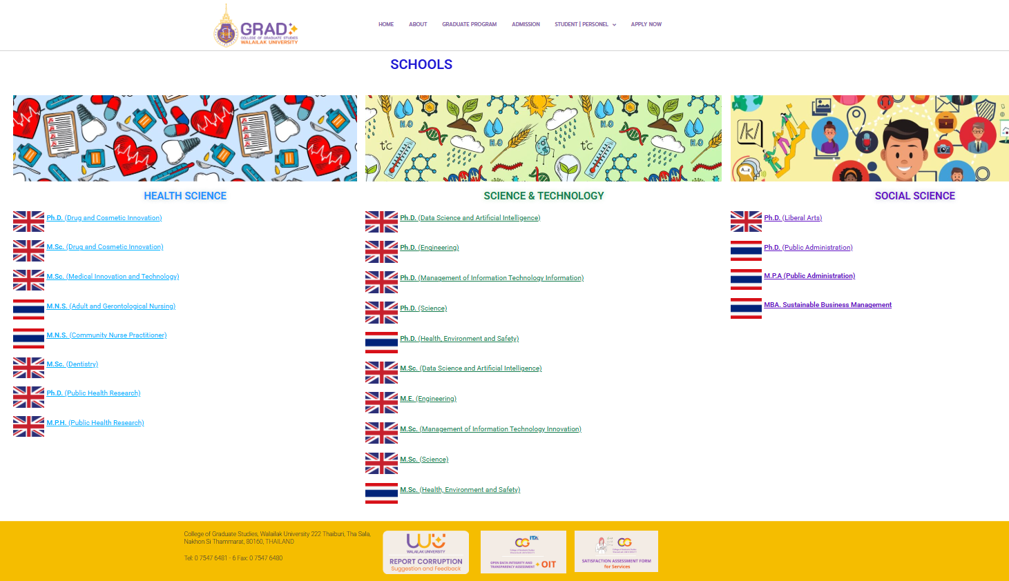 Walailak University (WU) aims to promote lifelong learning in both formal and informal education to ensure quality and integrated academic administration that responds to local and national needs.