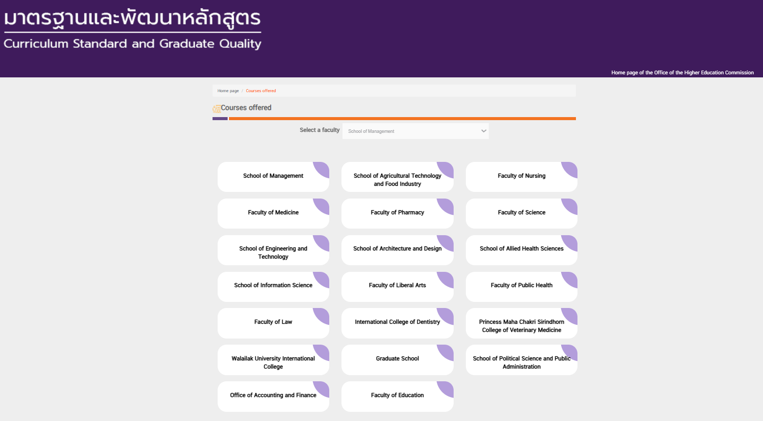 In the academic year 2025, Walailak University offered a total of 55 study program, and offered a total of 2,982 courses across 17 Schools, 3 Colleges, 1 Graduate School, and 1 Center for Cultural and Sports Promotion. All of these courses have been developed to incorporate sustainability concepts, either directly or indirectly, covering the environmental, social, cultural, and economic dimensions aligned with the United Nations Sustainable Development Goals (UN SDGs).