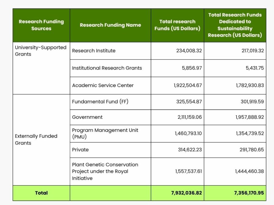A substantial allocation positions Walailak University as a leader in sustainability research. It underscores the institution’s role in fostering research that not only contributes to academic knowledge but also addresses practical challenges related to environmental and societal issues.