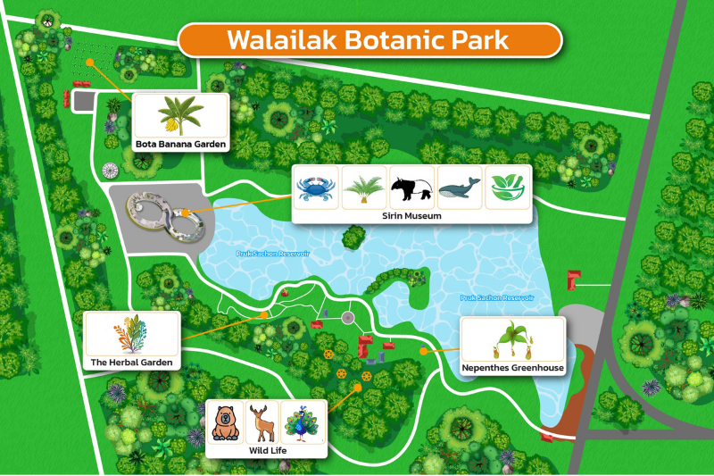 Walailak University Botanical Park is located within the university’s conservation area, covering approximately 2,160,000 square meters. It serves as a center for the conservation of plant species, animal species, wildlife, as well as genetic resources for food and agriculture. The park emphasizes the collection, propagation, and preservation of various plant families for the purposes of education, research, and conservation of native species in their original ecosystems.