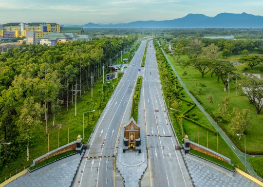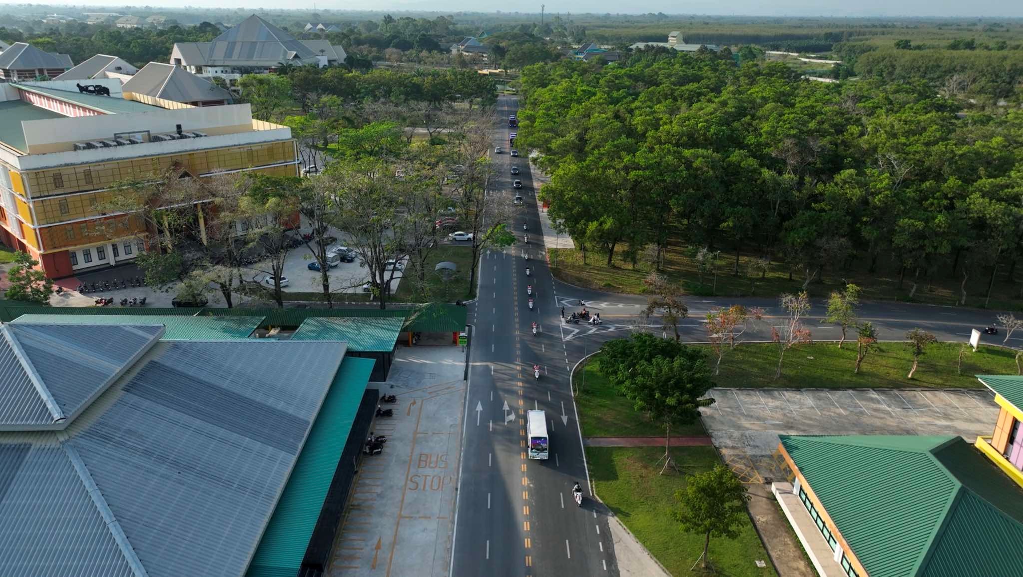 The university has launched a campaign to reduce motorcycle usage among first-year students starting in the academic year 2025. To support this initiative, the university provides both internal and external shuttle bus services. Additional public transport options, such as vans and minibuses, are available for students and staff who need to travel regularly to Nakhon Si Thammarat city. This project aims to reduce motorcycle-related accidents while promoting the use of electric motorcycles. The university also offers free electric vehicle rental services, with charging stations located throughout the campus, ensuring greater convenience, faster mobility, and reduced emissions.