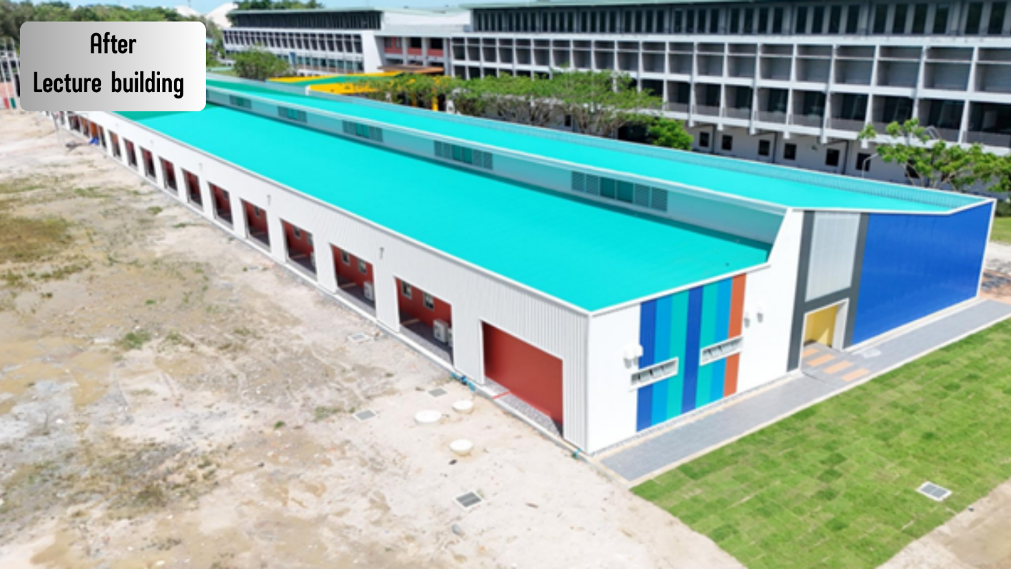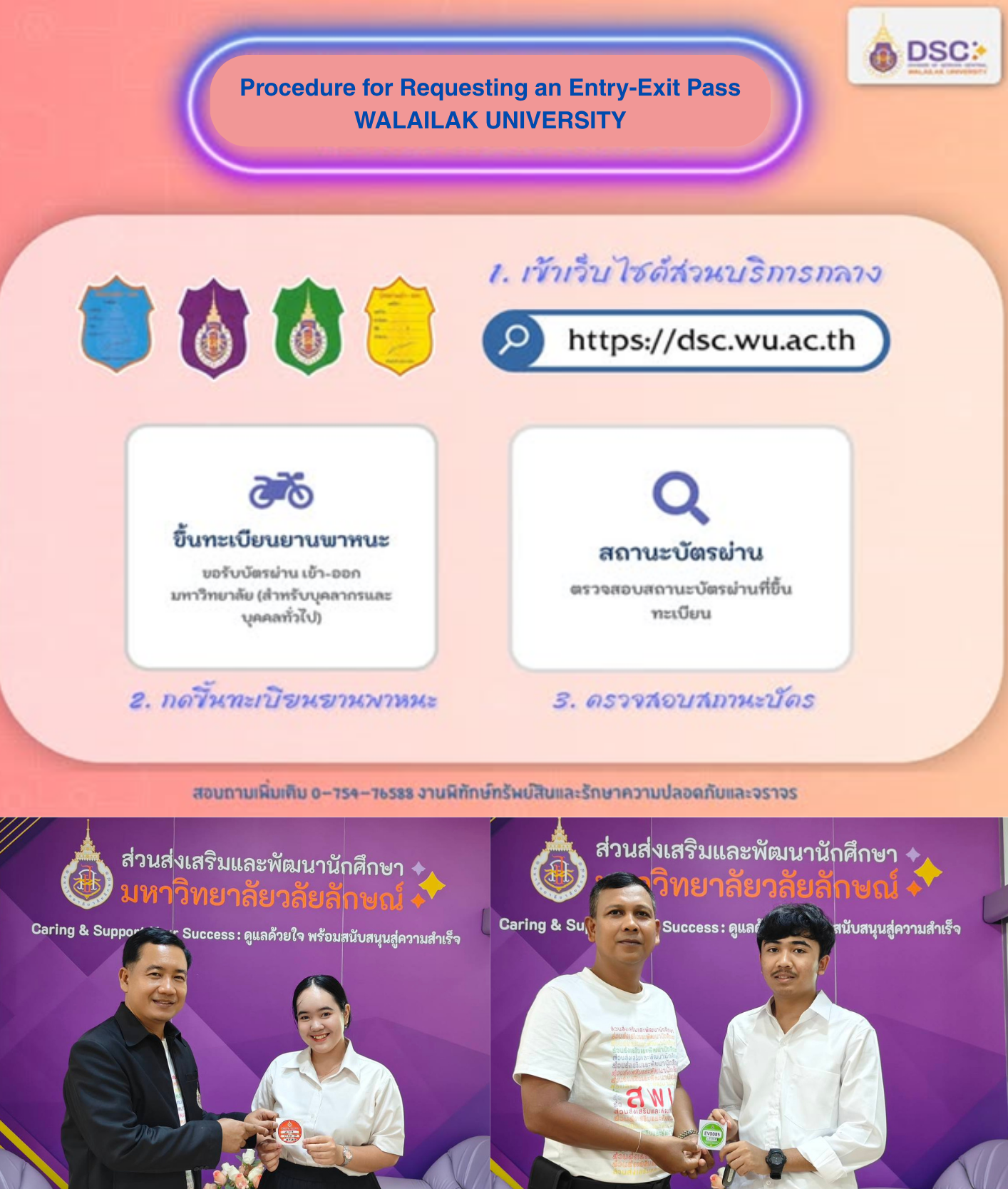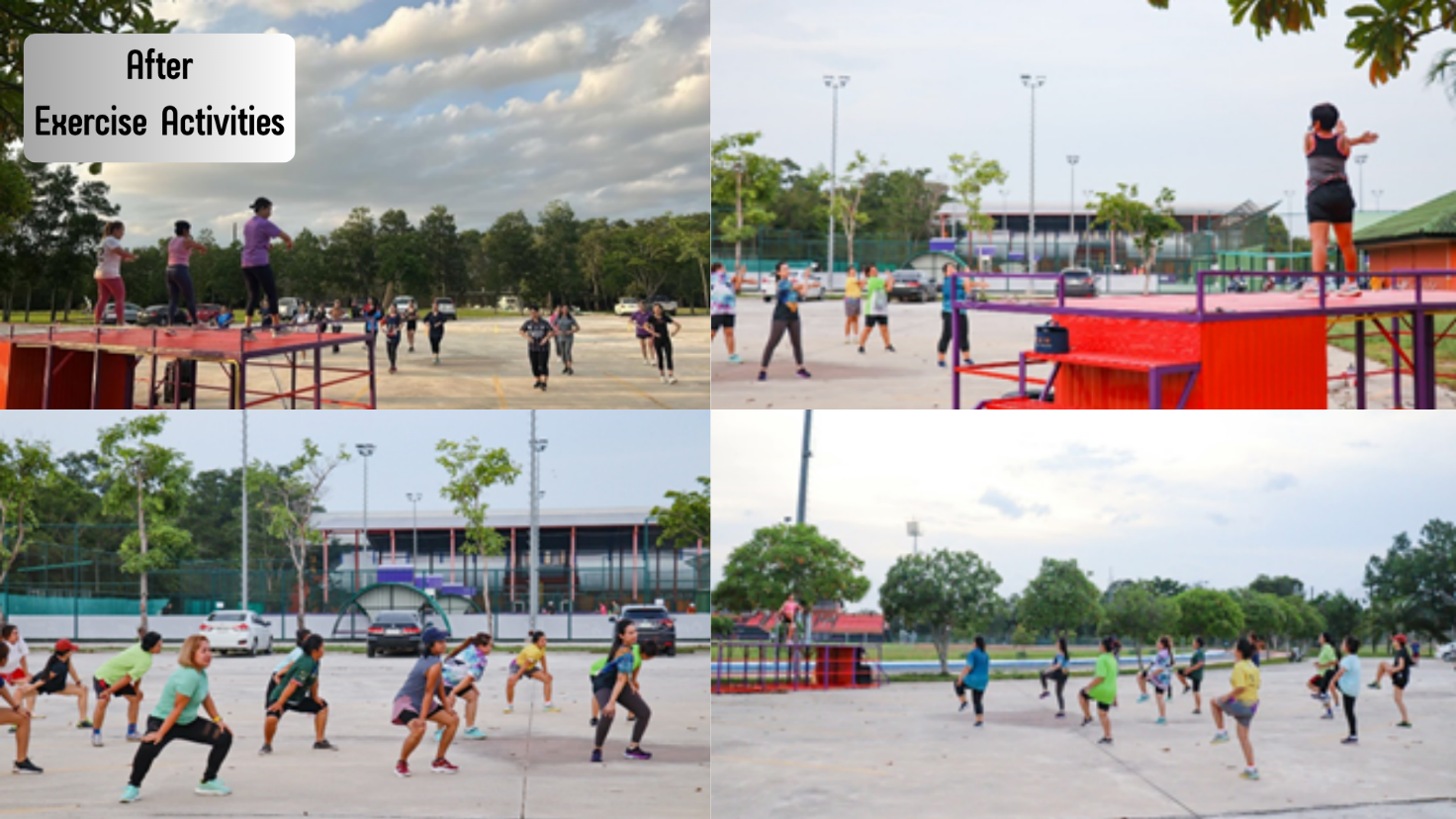 Walailak University has undertaken the reduction and reallocation of parking spaces within the campus. Certain parking areas have been repurposed for the construction of new academic buildings serving students and staff. Additionally, the parking area near the sports complex has been transformed into a daily exercise zone for the university community.