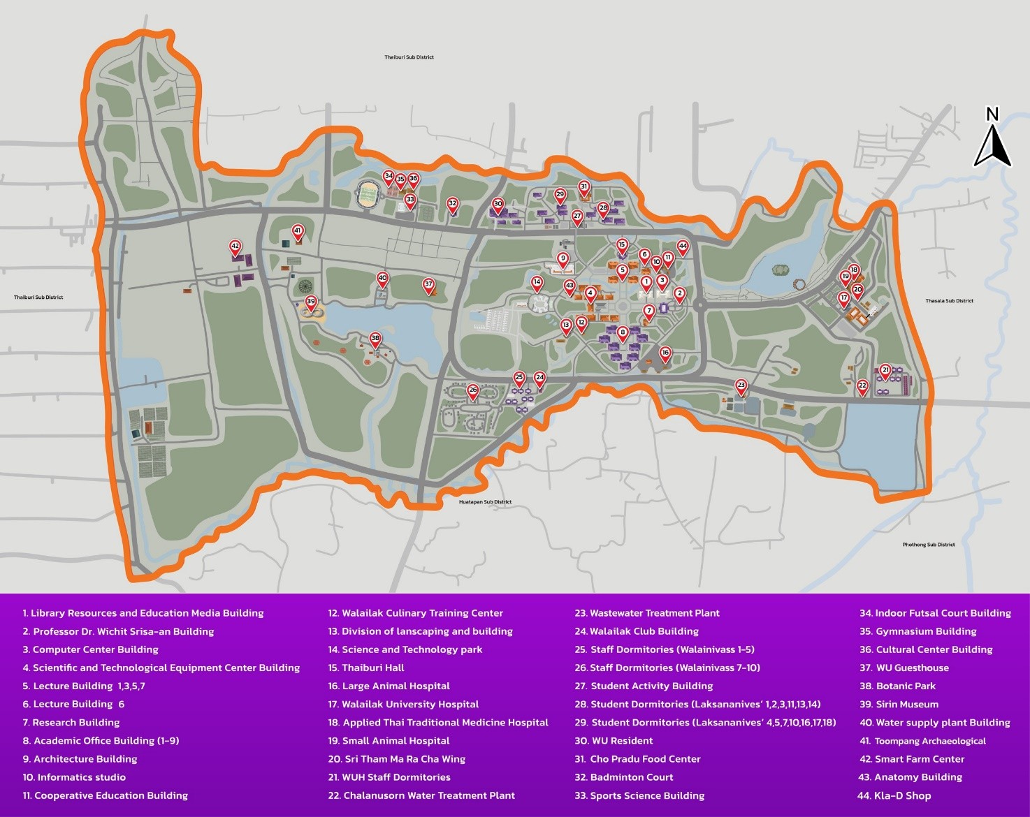 Campus Map Indicating the Locations of Walailak University Buildings