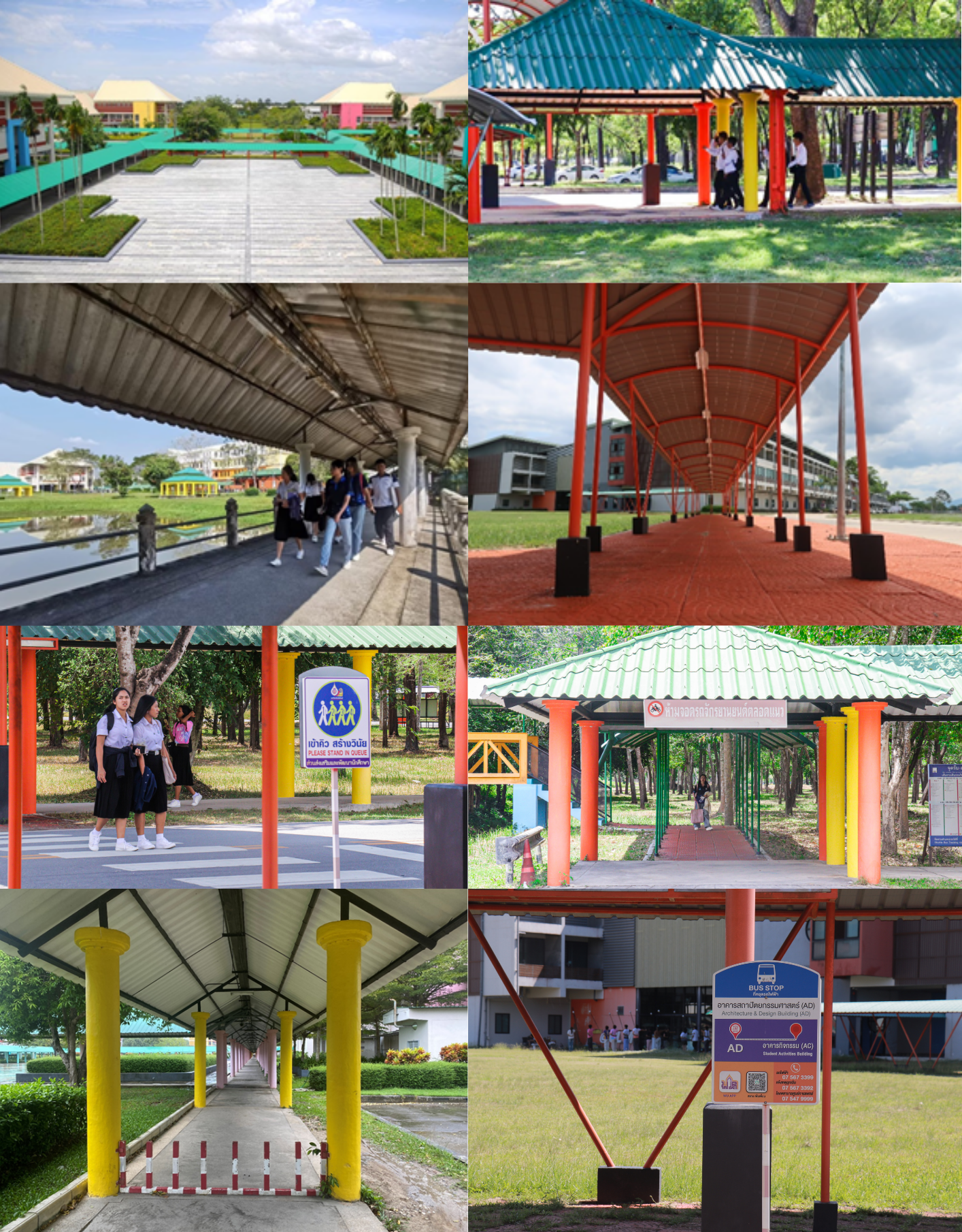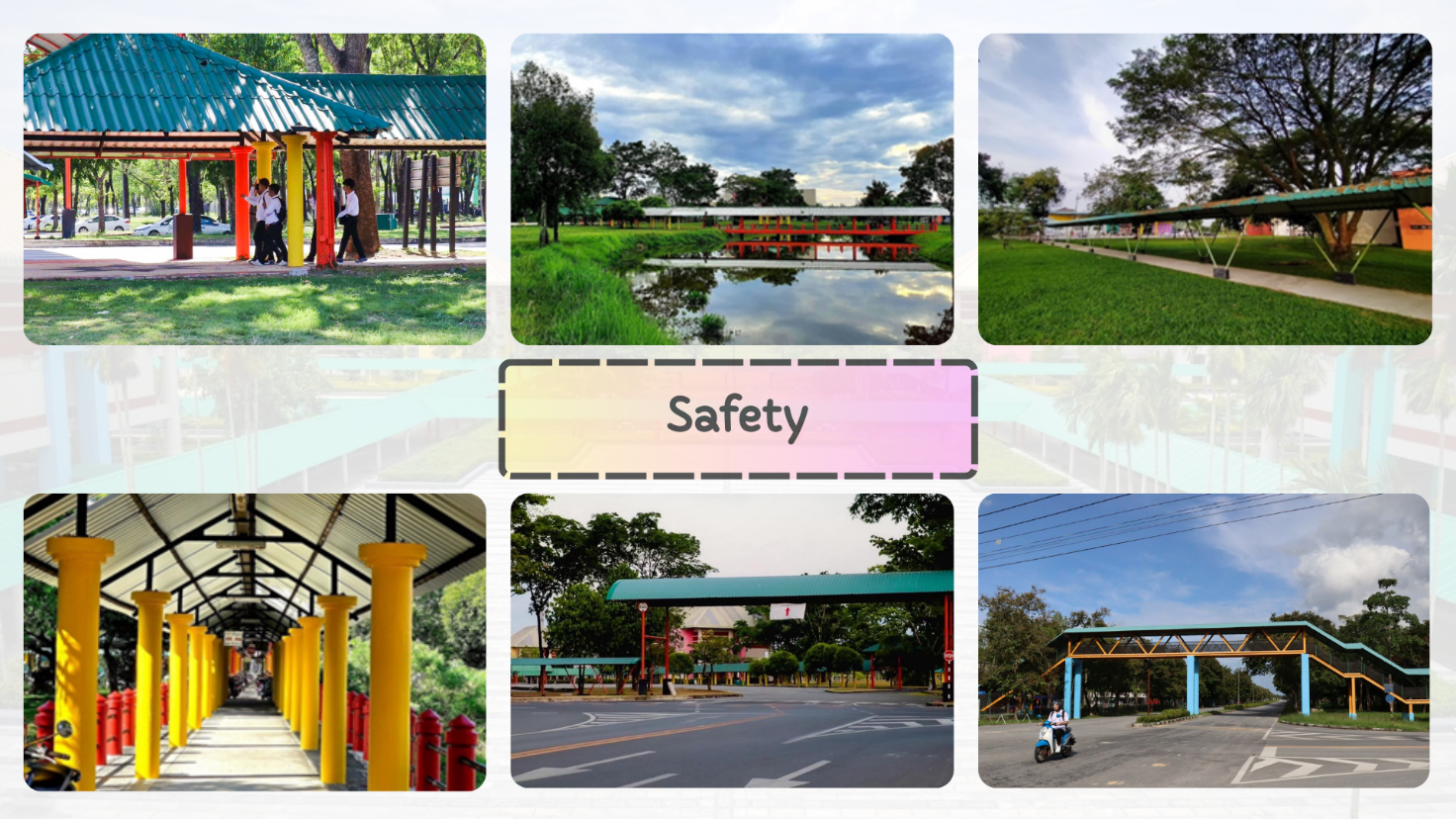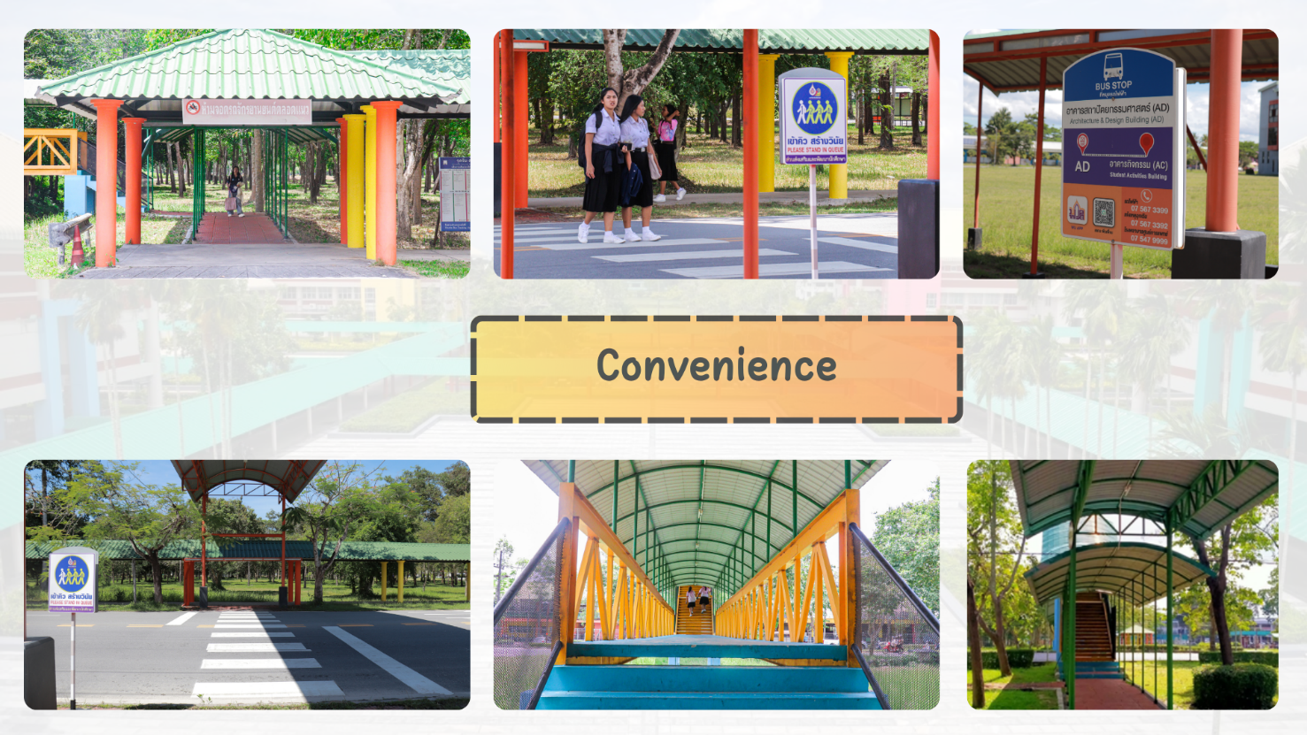 - The walkways connect all major campus buildings and are fully covered to provide protection from extreme weather conditions.