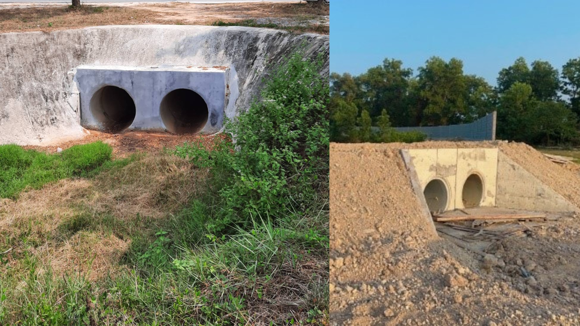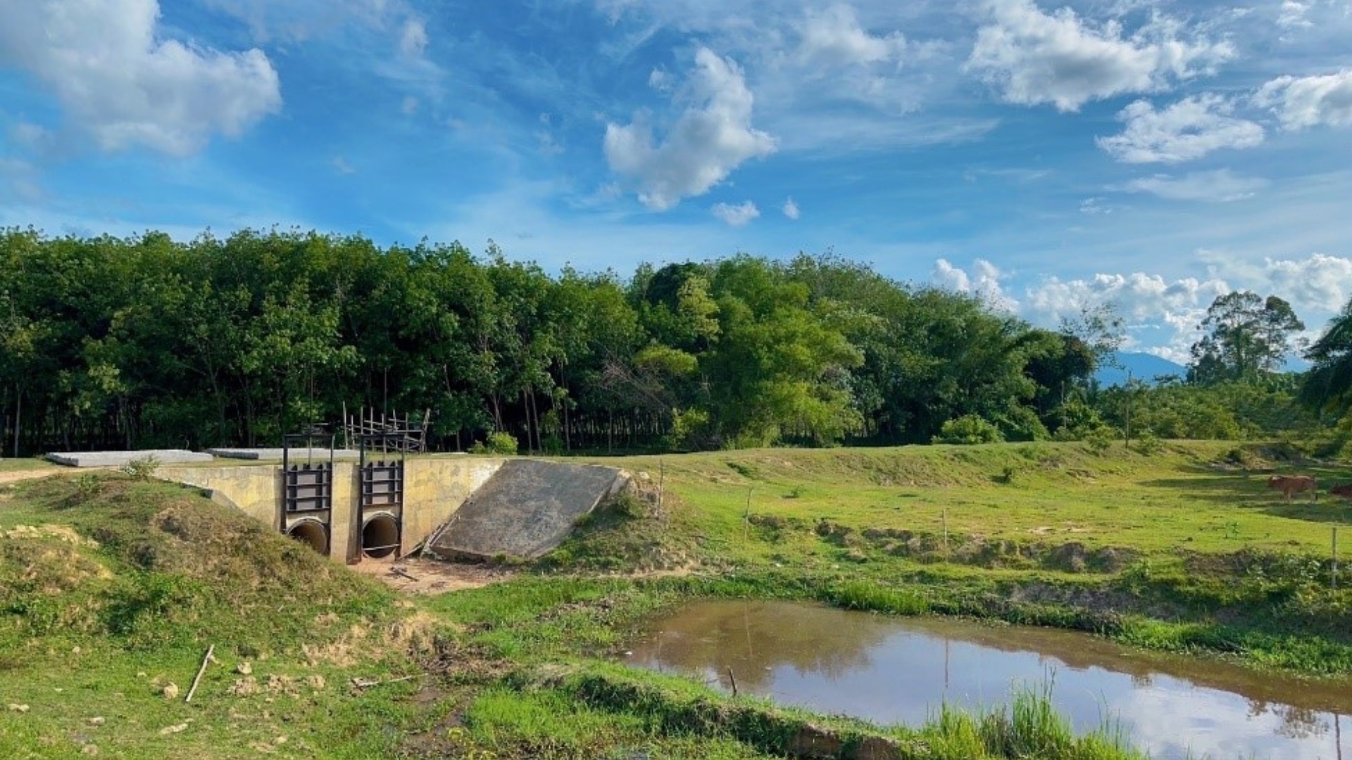 Figures: Flood Control Gate Construction to regulate water levels, prevent flooding, and reduce the risk of untreated wastewater discharge into the environment. (Walailak University, Thailand)