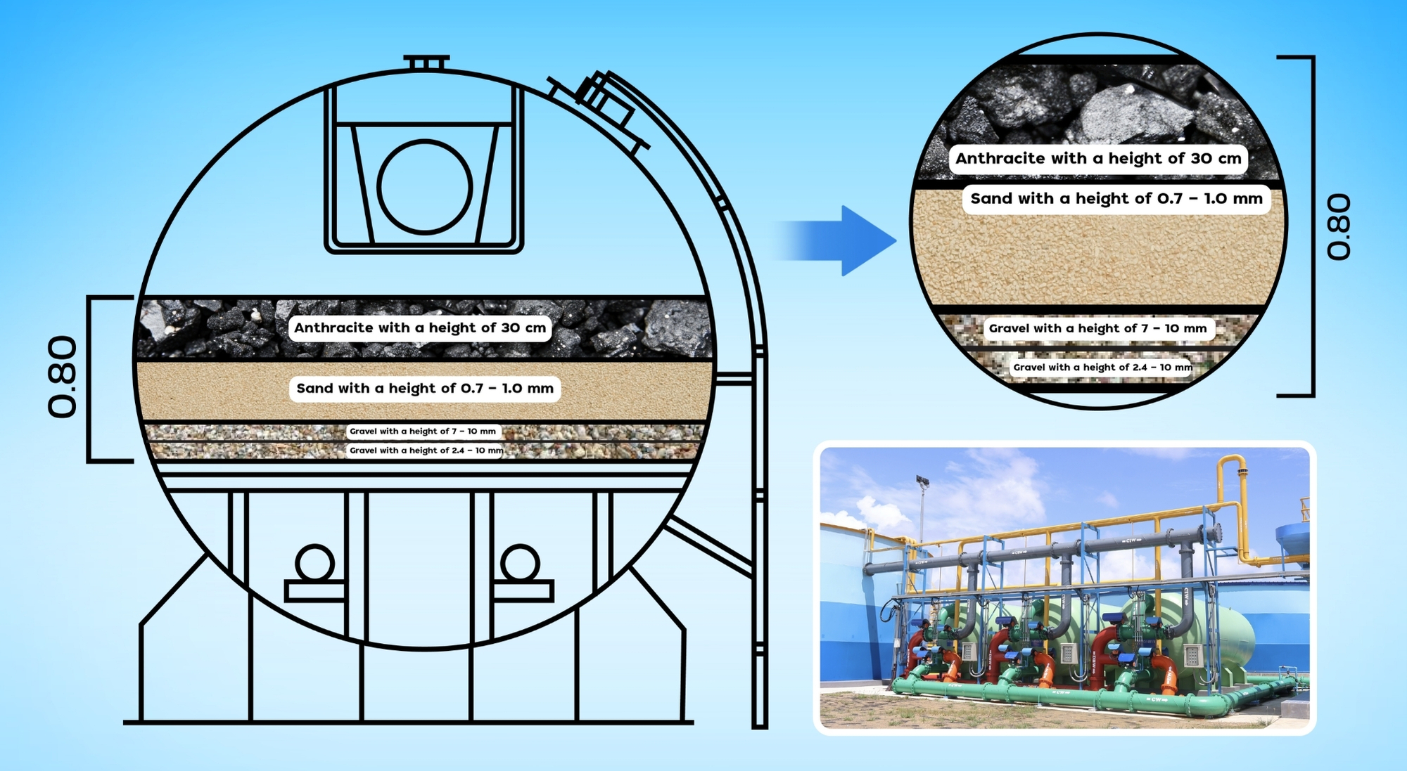 - Sand Filtration Units (Horizontal Sand Filters) consist of gravel, sand, and anthracite layers, with automatic backwashing to prevent clogging and maintain efficiency.