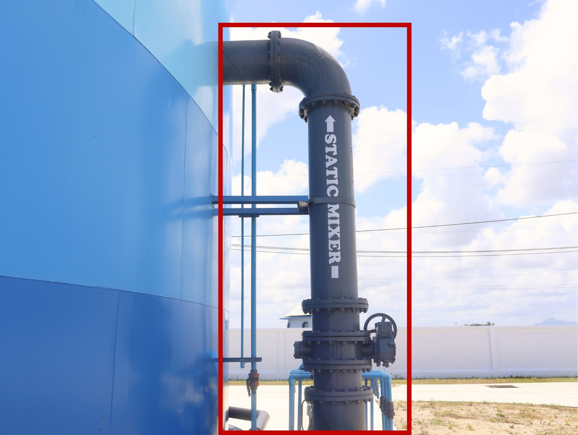 - A static mixer adds chemicals such as poly aluminium chloride (PAC) for coagulation, soda ash for pH adjustment, and pre-chlorination to control microbial growth, preventing polluted or unsuitable water from entering the treatment system.