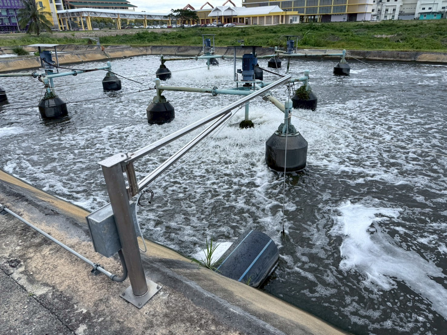 - Secondary Treatment (Aerated Lagoon): A 5-meter-deep aerated lagoon equipped with vertical surface aerators ensures thorough oxygenation, enabling bacteria to degrade organic matter effectively.
