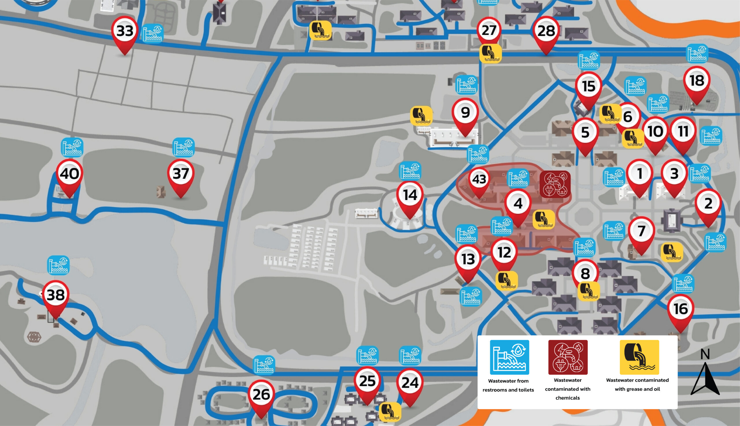 Figures: Map of Wastewater Sources within Walailak University (Walailak University, Thailand).