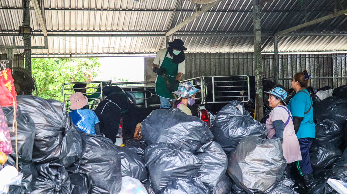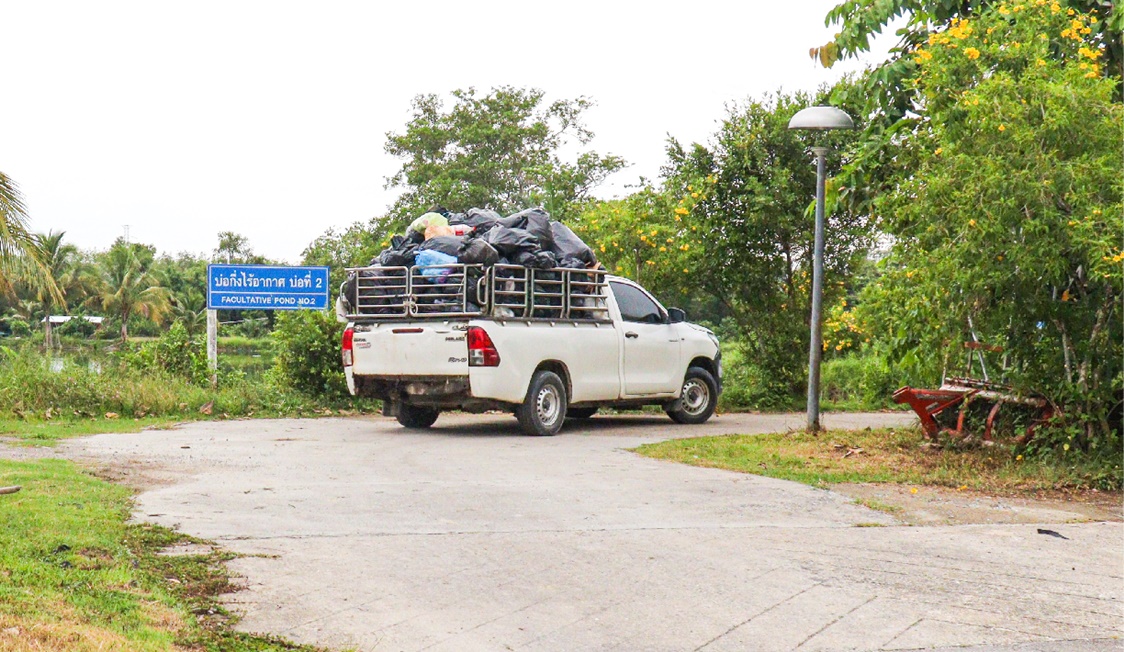 For recycling, it can be separated into two types of waste: inorganic waste: materials such as paper, glass, and plastic are sold to industrial factories for further recycling; and organic waste: items like vegetable scraps, food waste, leaves, and branches are repurposed as animal feed or compost. This organic waste is used to feed pigs and create compost for ornamental and fruit-bearing plants on campus. Any surplus compost is sold to generate additional revenue for the university.