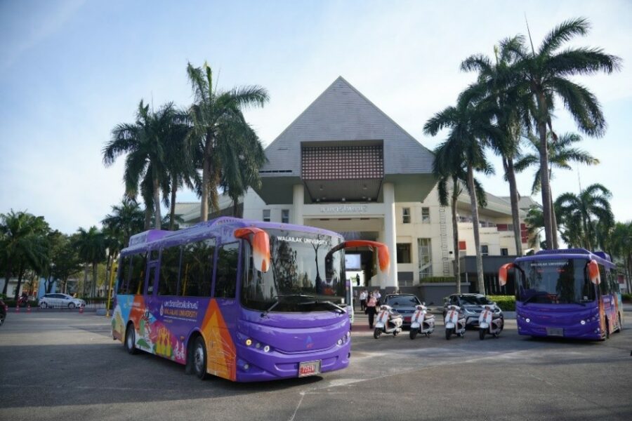 The University has transitioned to electric vehicles for its fleet, including minibuses, delivery vans, and security vehicles, significantly reducing reliance on combustion fuels. In 2025, Walailak University successfully reduced greenhouse gas emissions by 39.07 tCO₂e/year through the use of electric vehicles.