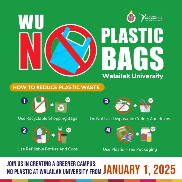 This program aims to reduce indirect greenhouse gas (GHG) emissions (Scope 3) generated from the daily commuting of students and staff. Walailak University promotes sustainable commuting through several key initiatives. The university implements a vehicle sticker system for cars and motorcycles, allowing only registered vehicles with university stickers to enter the campus area. This measure helps control traffic flow, reduce the use of personal vehicles, and encourage carpooling.
