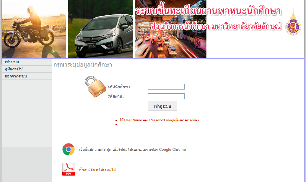 Figures: Sticker for motorcycles and sticker for cars. Only vehicles with university stickers are allowed to enter the school district. (Walailak University, Thailand)