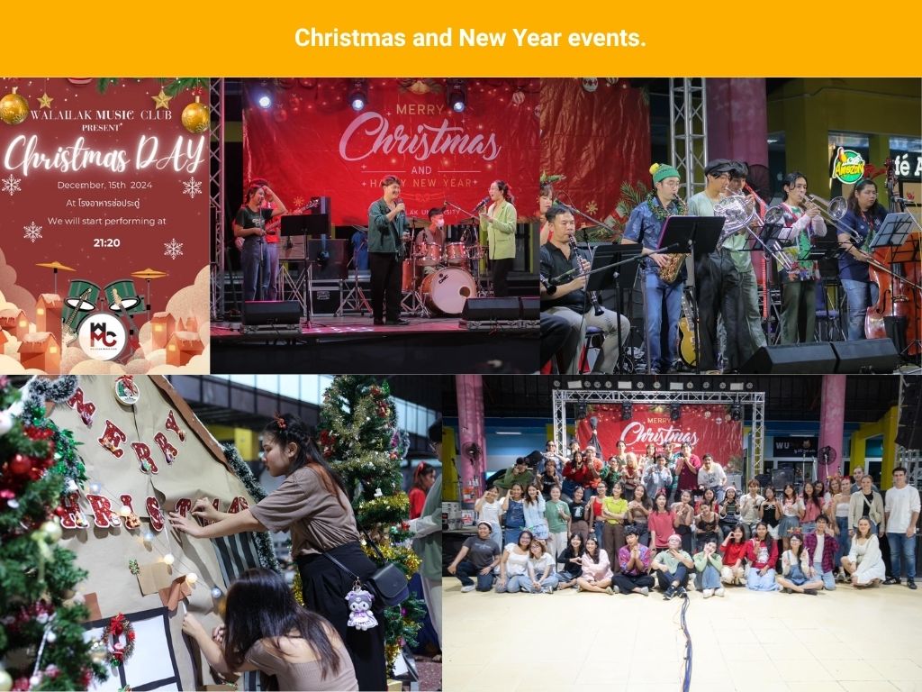 The event featured performances by the Life Stream Church of Surat Thani, classical music, and performances by student clubs such as the Christian Club, Ensemble Club, Cover Dance Club, and International Music Club.Over 350 students and staff attended the event.