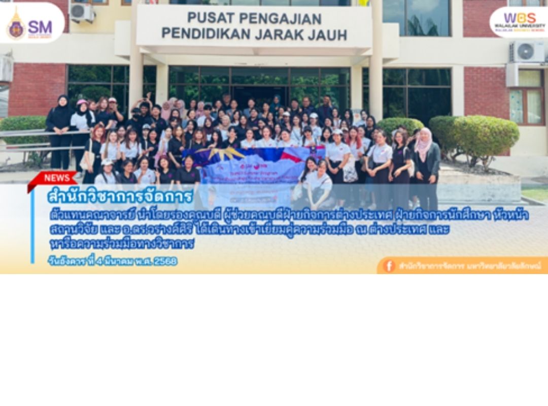 - A group of 30 English major students from the School of Liberal Arts, Walailak University, traveled to Kuala Lumpur, Malaysia, to participate in an international study visit program aimed at enhancing English language skills and cross-cultural understanding through experiential learning.