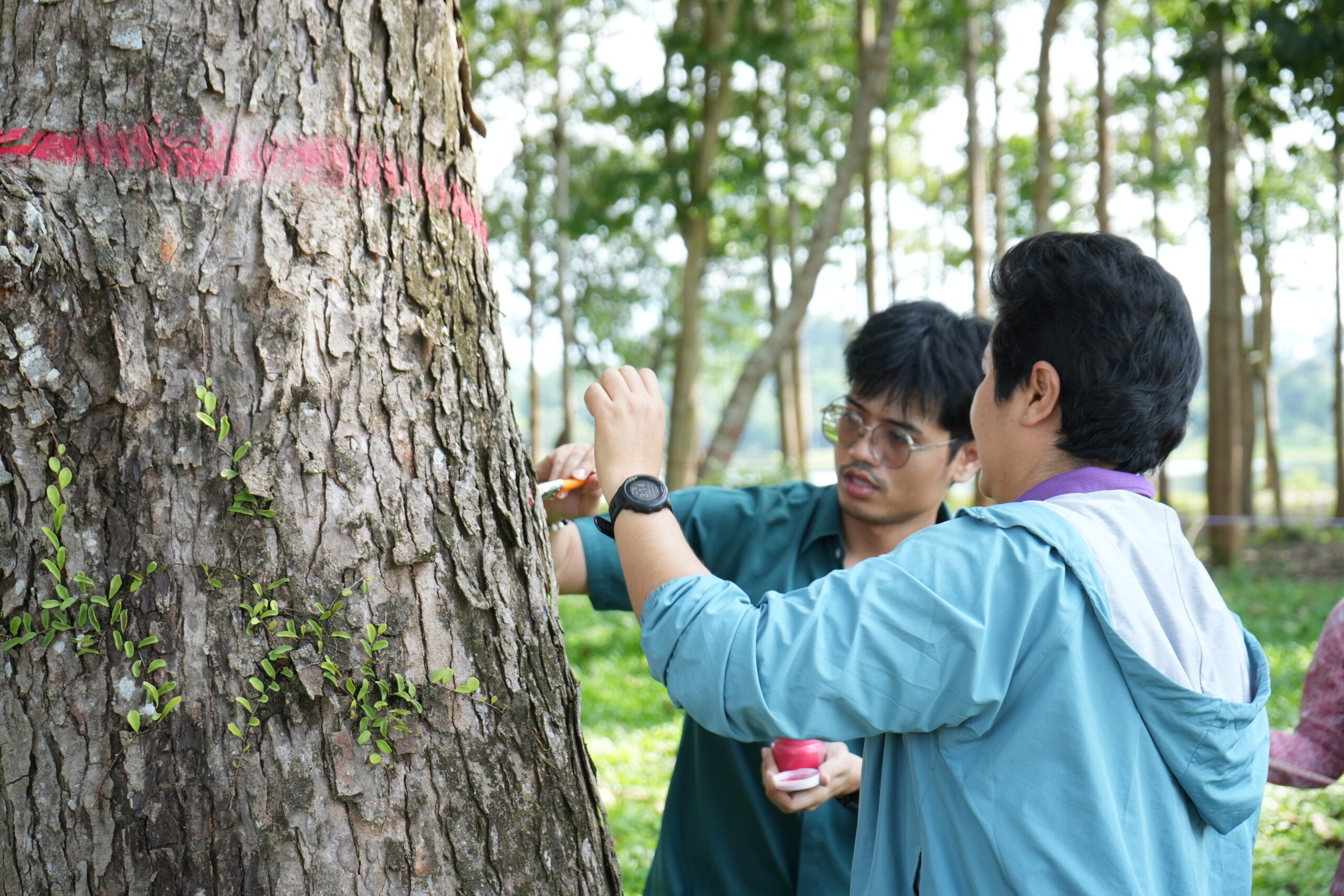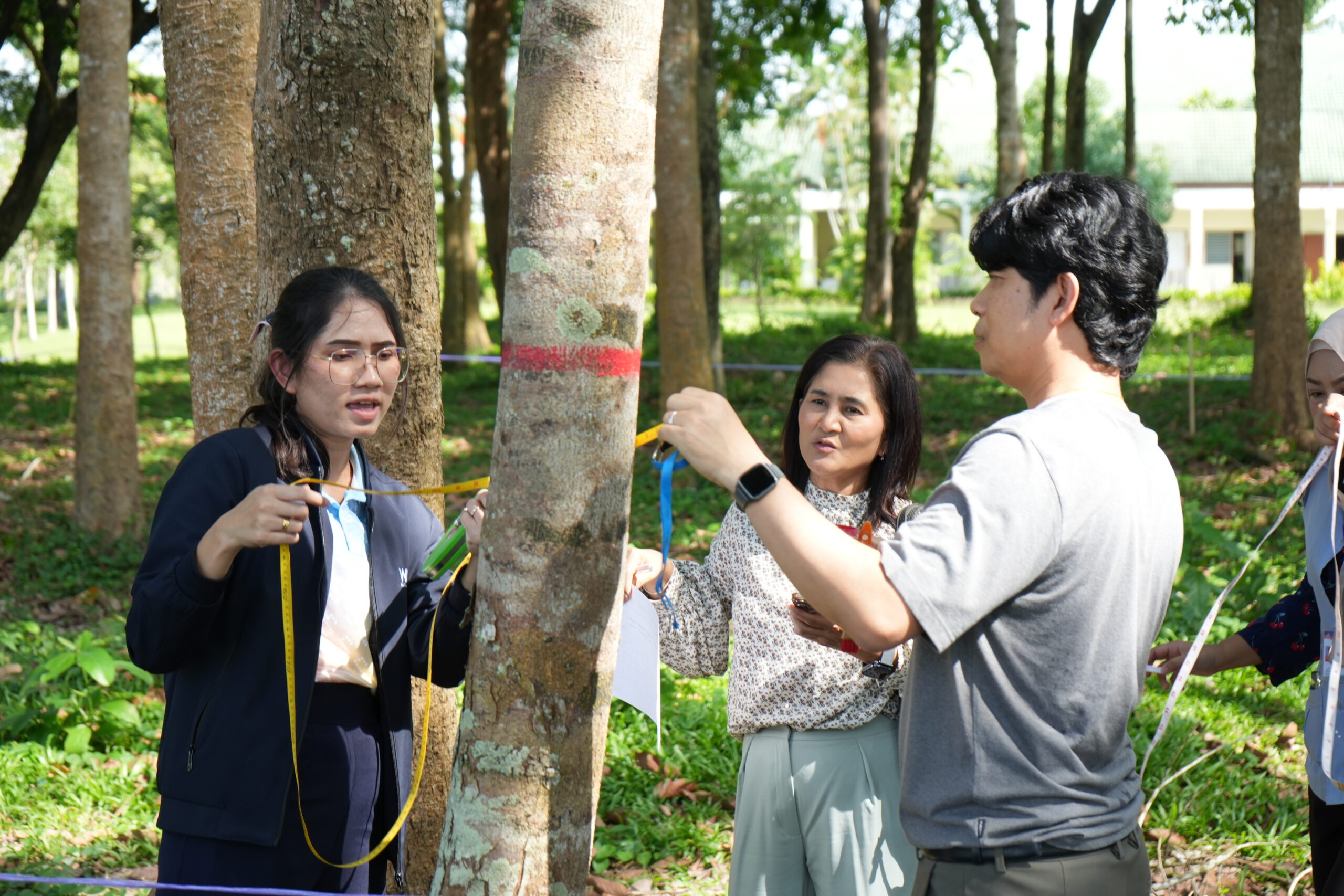 The event, chaired by Assoc. Prof. Dr. Chatchai Kalyanapan on behalf of Assoc. Prof. Dr. Suvit Wuttisuttimethavee, featured lectures and field training led by Assoc. Prof. Dr. Laksanara Khwanchum and her team. Participants learned practical methods for carbon footprint analysis, tree measurement, and greenhouse gas reduction planning.
