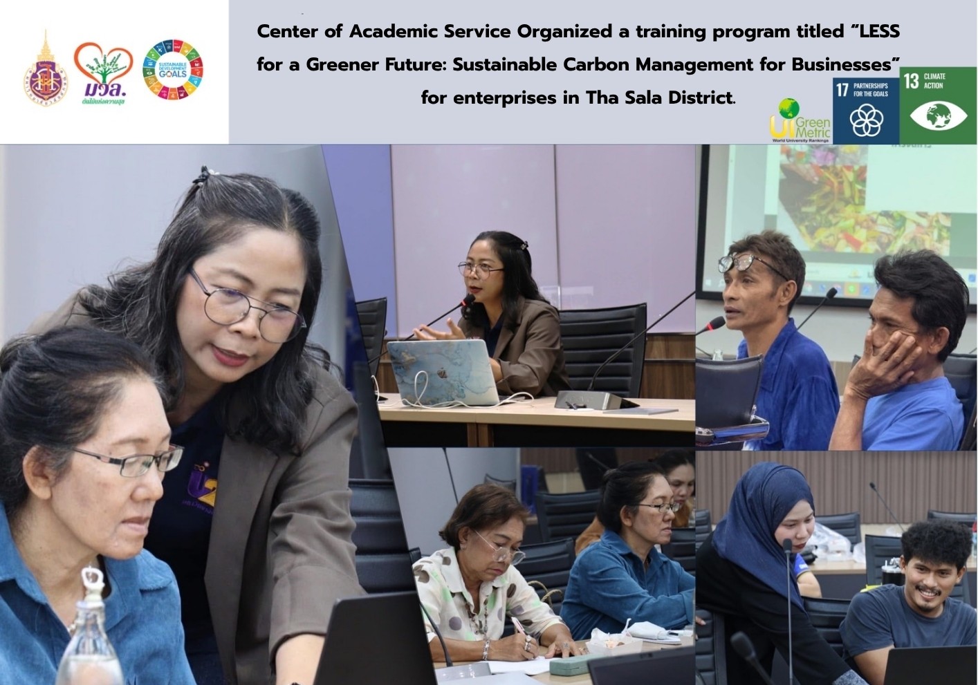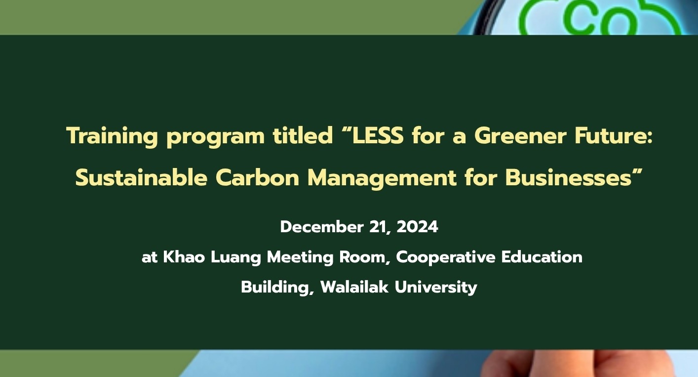 Walailak University, led by Assoc. Prof. Dr. Laksanara Khwanchum, Deputy Director of the Academic Service Center and Project Leader, in collaboration with Mr. Songpan Chanthong, lecturer at the School of Multilingual and General Education, organized a workshop titled “LESS for a Greener Future: Business Carbon Management.” The event, part of the project “Developing Tourism Capacity Toward Low-Carbon Community Tourism in Tha Sala District, Nakhon Si Thammarat,” was held on December 21, 2024, at Khao Luang Meeting Room, Cooperative Education Building, Walailak University.
