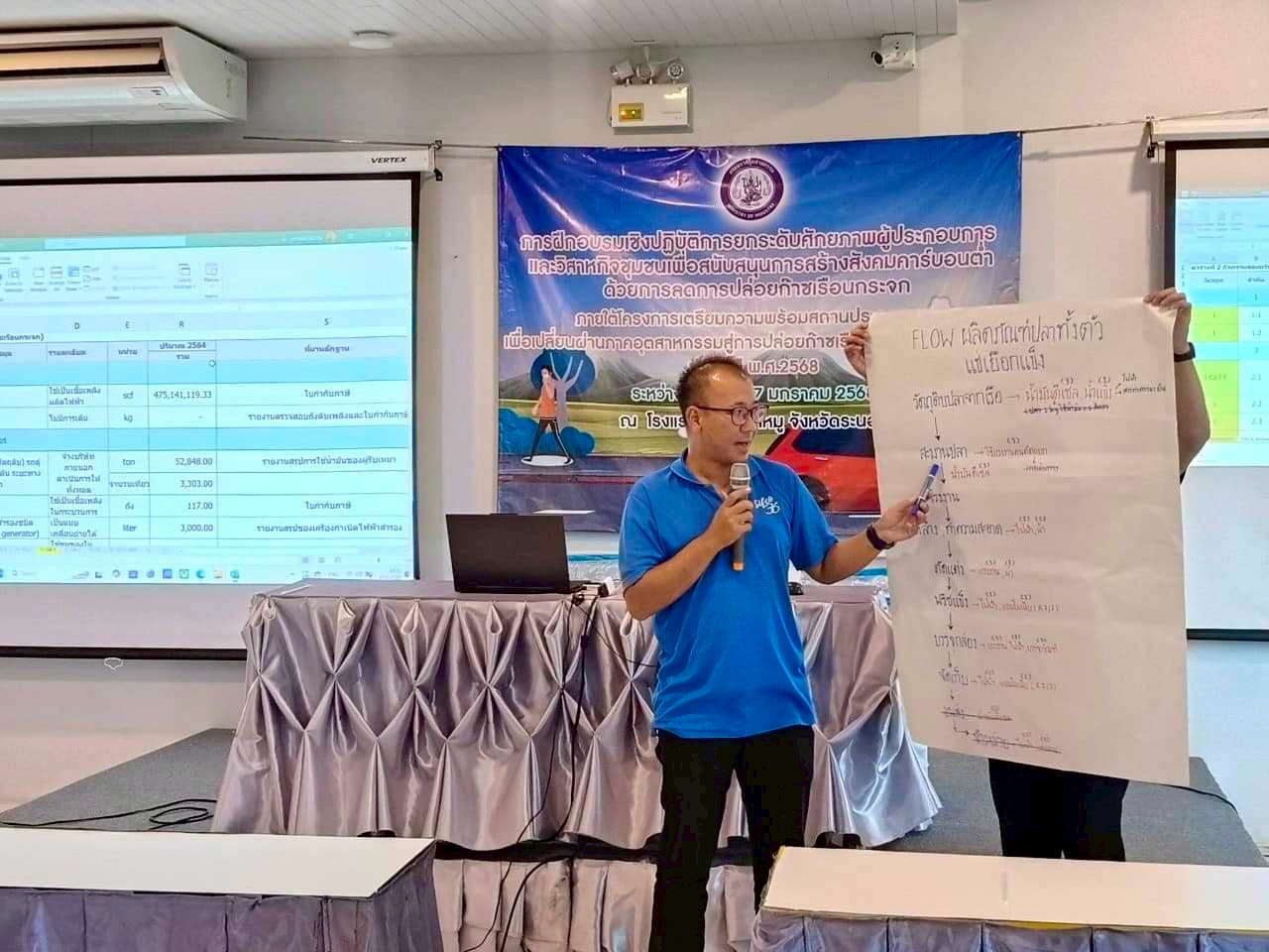 The workshop aimed to provide local entrepreneurs, community enterprises, and relevant sectors with knowledge, techniques, and practical approaches to reduce greenhouse gas emissions in preparation for Thailand’s Net Zero goal. The training emphasized the roles of industry and communities in emission reduction through production process improvements, renewable energy use, efficient waste management, and the application of standards set by the Thailand Greenhouse Gas Management Organization (Public Organization).