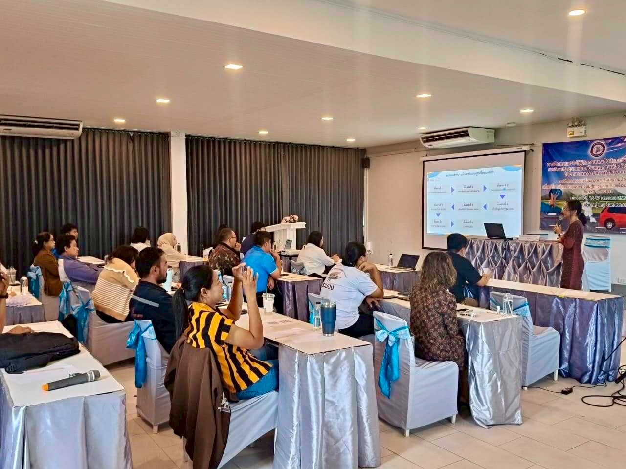 The training targeted tourism-related entrepreneurs—including hotels, resorts, homestays, shops, restaurants, and cafés—in Tha Sala District who are interested in joining the Low Emission Support Scheme (LESS). The program emphasized carbon reduction through waste management, energy efficiency, and eco-friendly product or packaging design. A total of nine local businesses and over 20 participants attended the session.