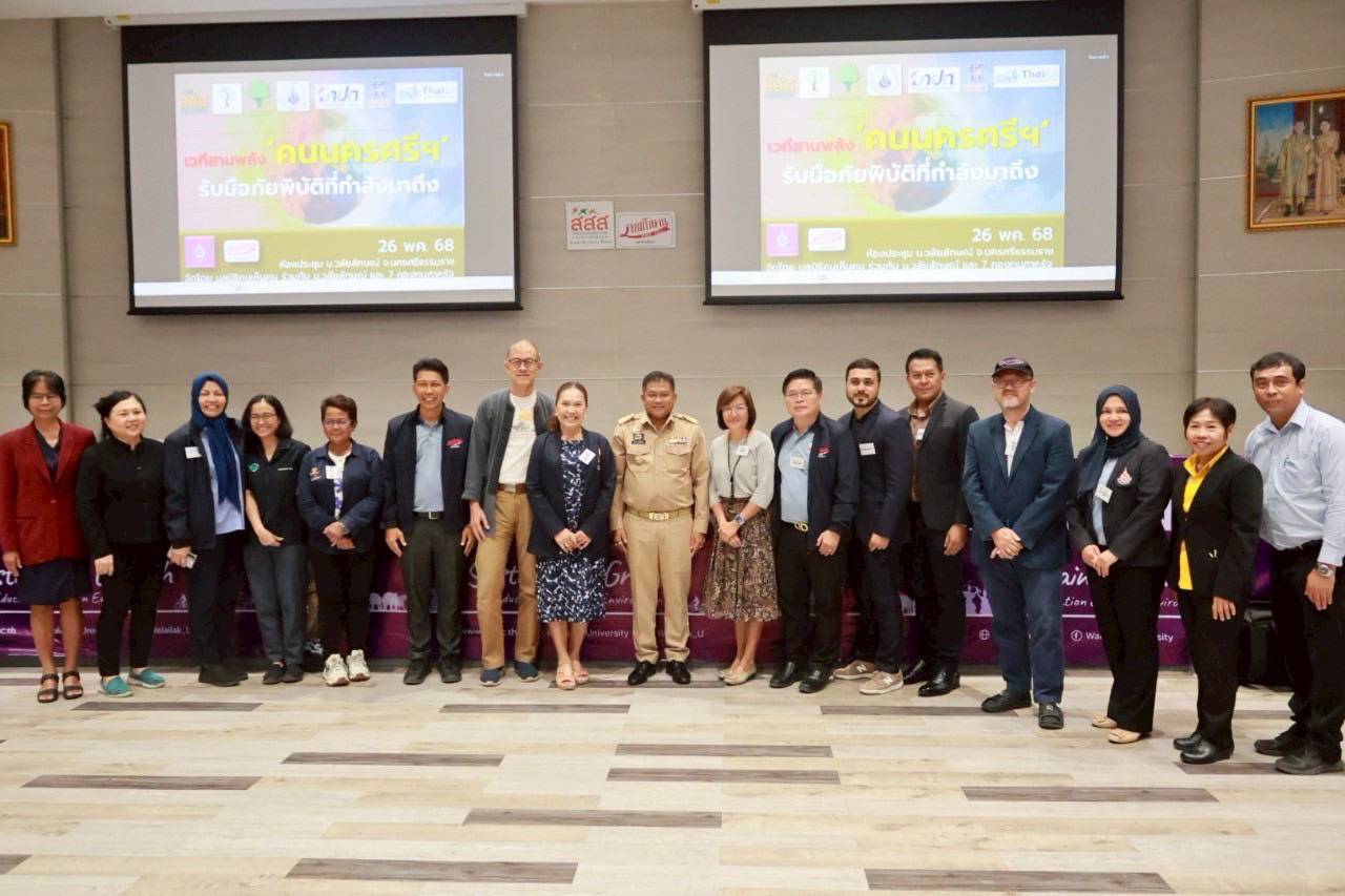 The event was presided over by Mr. Somchai Leelanoi, Governor of Nakhon Si Thammarat Province, with participation from Assoc. Prof. Dr. Wichitphan Rorwong, Acting Director of the Institute for Research and Innovation Promotion toward Excellence, Walailak University, together with the Dean, faculty members, and researchers from the School of Public Health, as well as representatives from civil society, government, local authorities, and the private sector.
