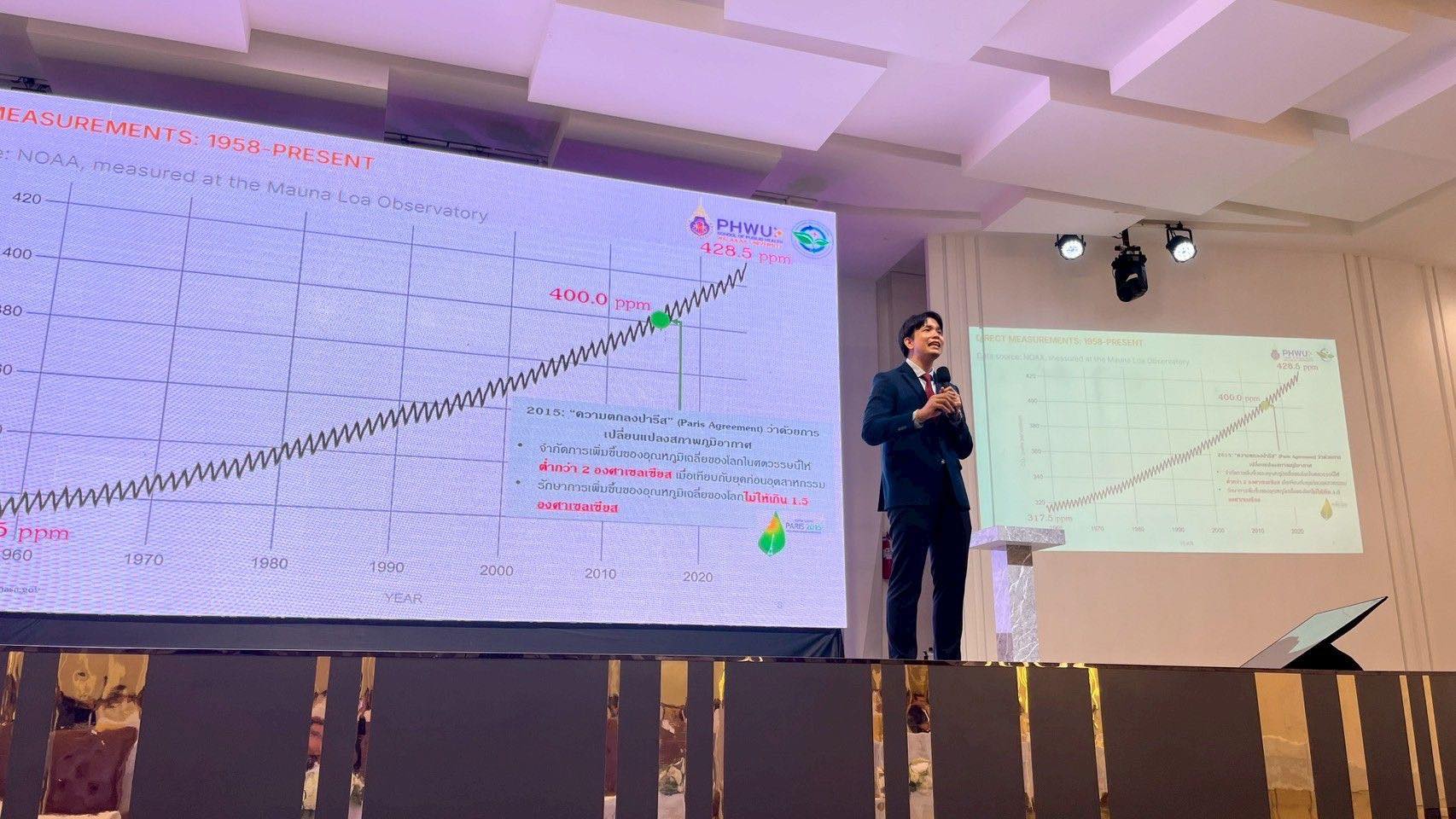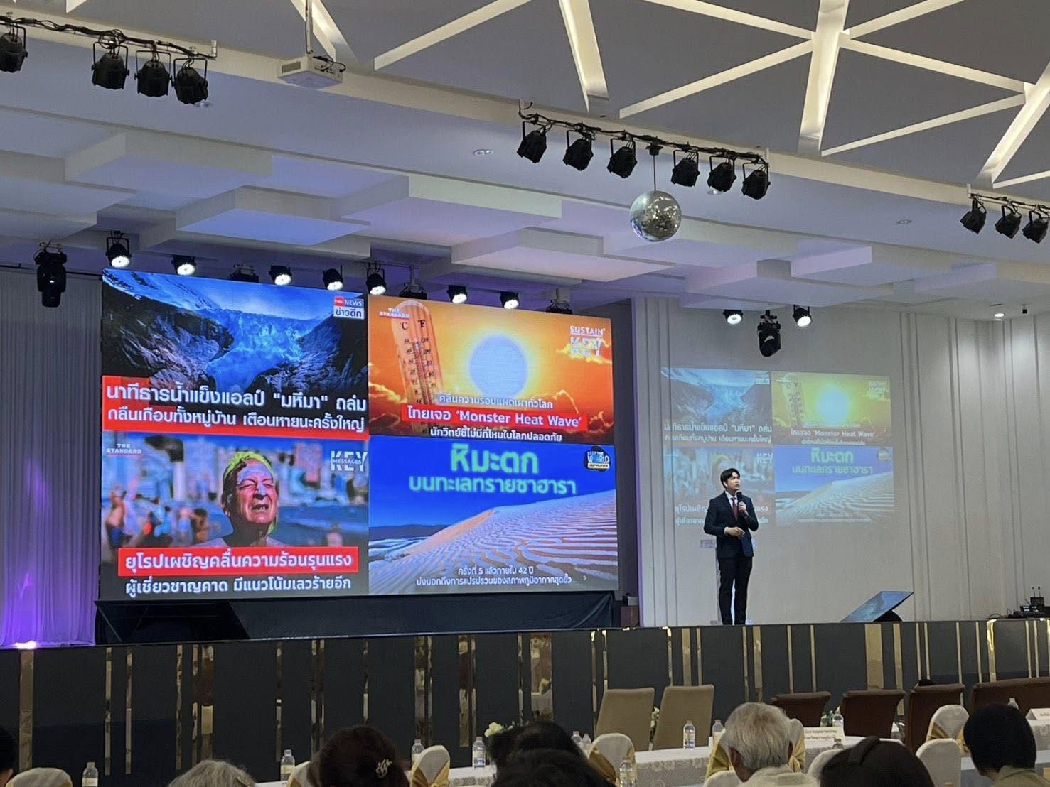 “Asst. Prof. Apirak Bumyut delivers a lecture on sustainable business and carbon footprint management at the Regional Industrial Seminar”
