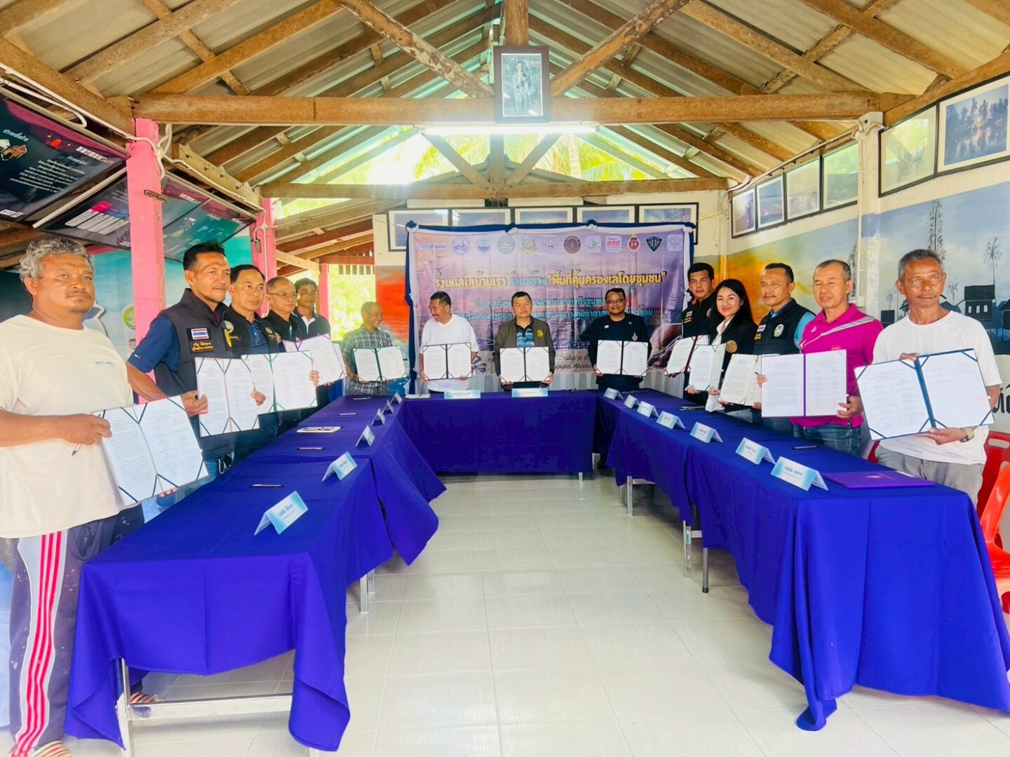 A highlight of the event was the signing of a Memorandum of Understanding (MOU) between the Ban Nai Thung, Ban Sra Bua, and Ban Na Tap communities. Facilitated by the Center for Academic Services, the MOU formalized their collaborative efforts in managing local marine areas through the Locally Managed Marine Area (LMMA) approach, reinforcing their shared commitment to sustainable natural resource management for the long-term benefit of their communities.